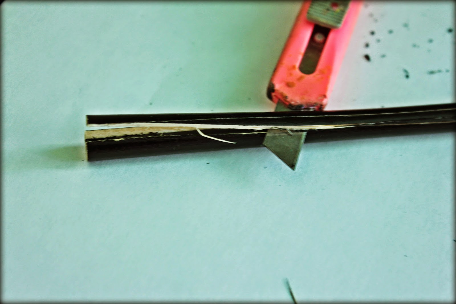 1. Канцелярским ножом отделяем древесину от грифеля.
